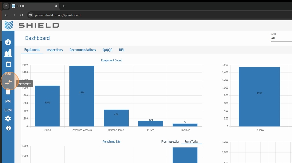 6. Return to SHIELD and select the "Import/Export" icon.